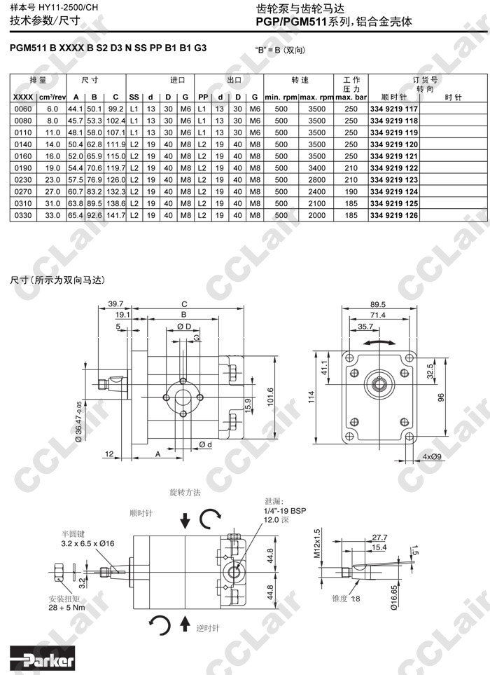 PGP511A,PGP511B,PGP511M,PGP511A0040CA1H1,PGP511M0040CA1H1,PGP511B0040CA1H1,Parker齒輪泵