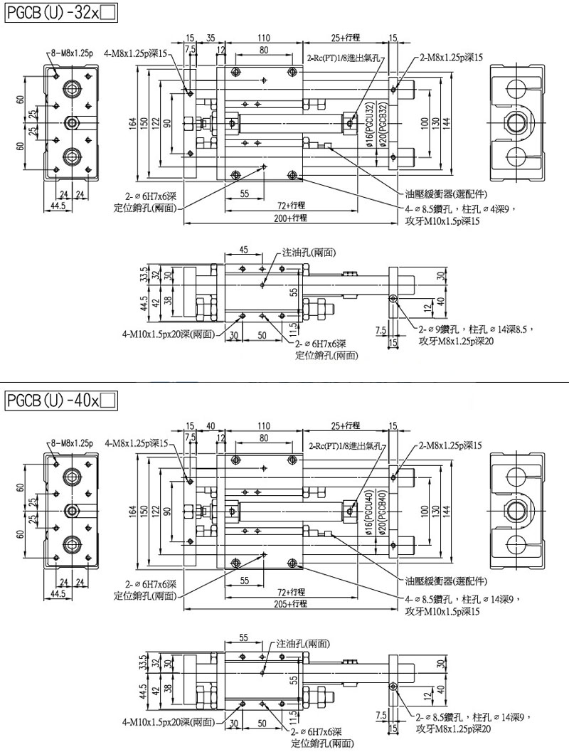 PTMB-20,PTMU-32,PGCB-20,PGCU-32,PTMB-40,PGCB-40,panix輕負荷導桿氣缸