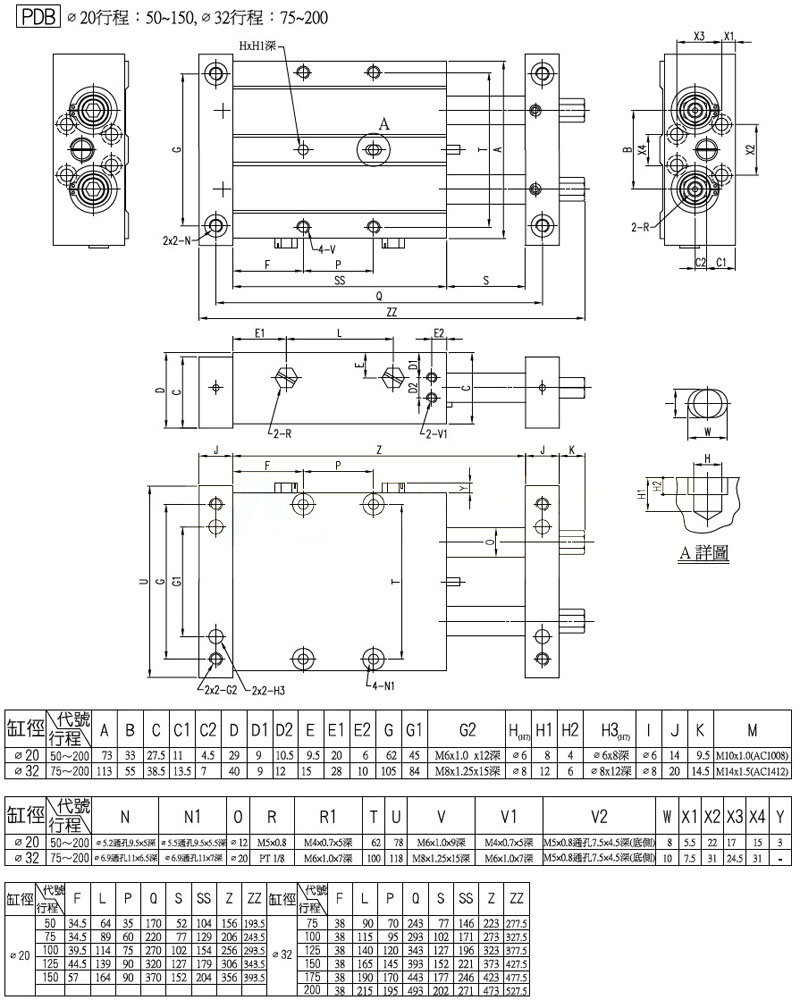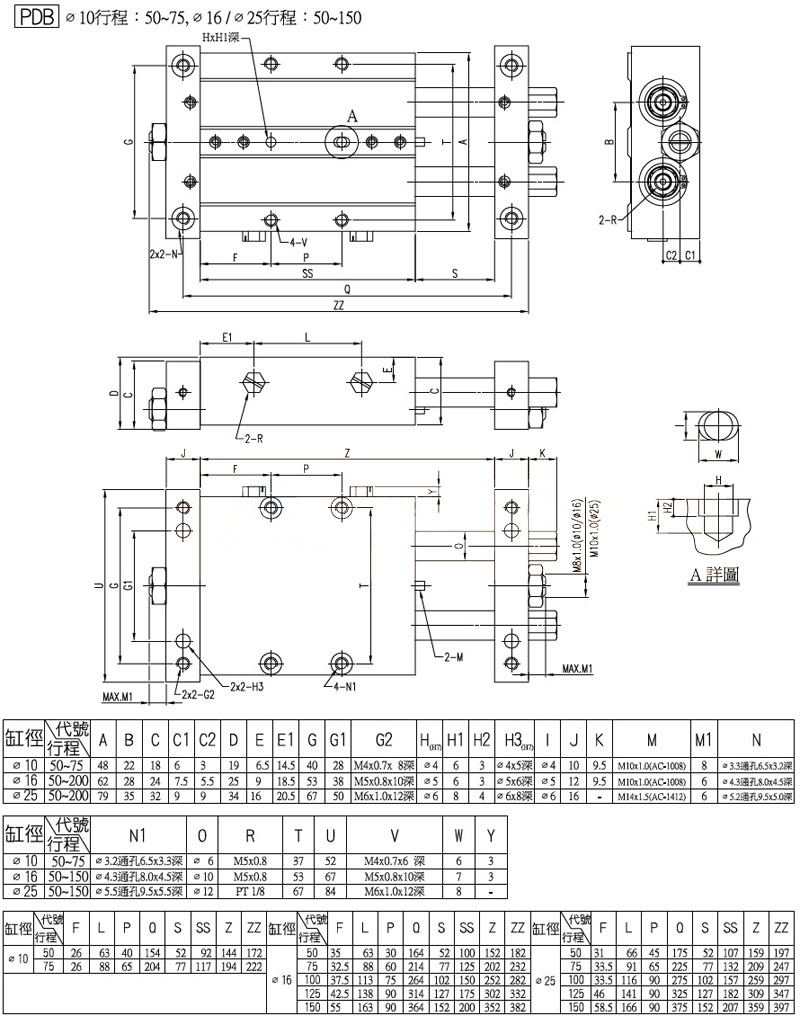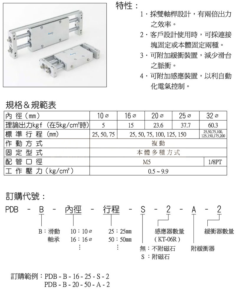 PDB-B-10,PDB-B-16,PDB-B-20,PDB-B-25,PDB-B-32,panix滑動(dòng)軸承式滑臺(tái)氣缸