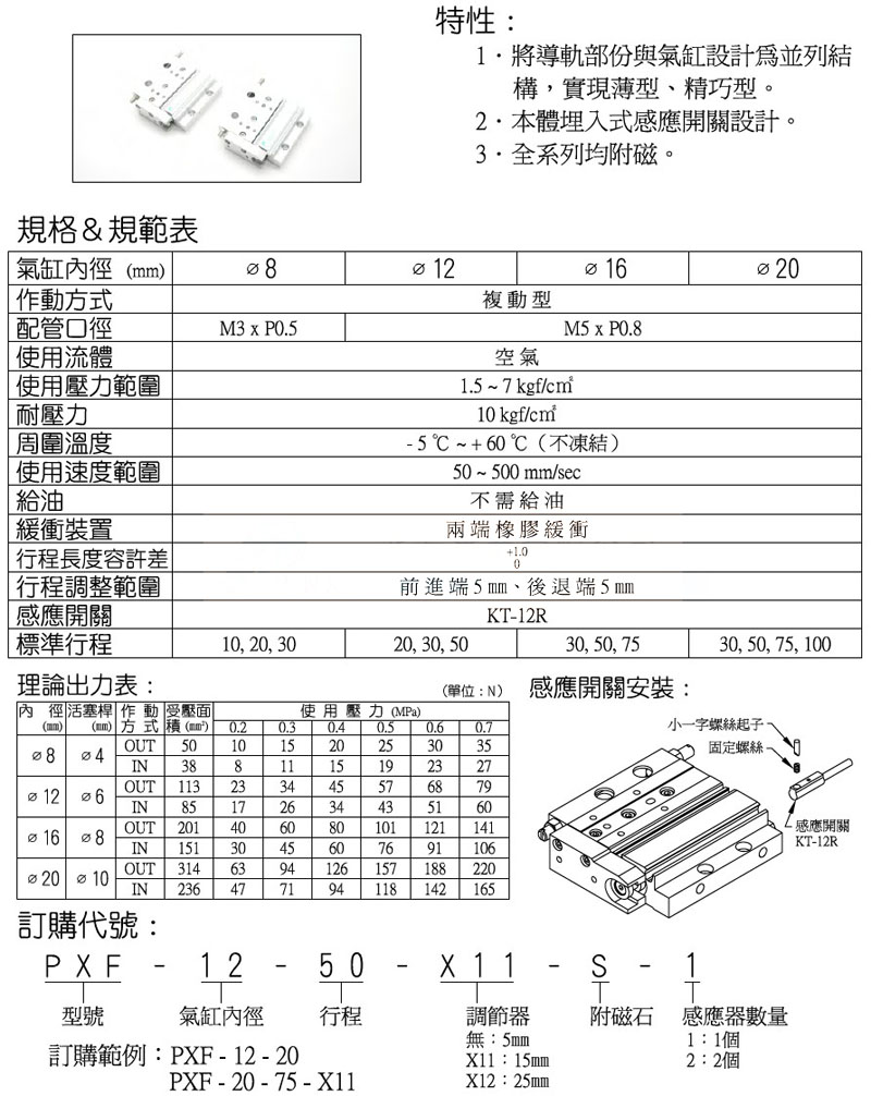 PXF-8-10,PXF-16-50,PXF-20-30,PXF-12-30,panix精巧型滑軌氣壓缸