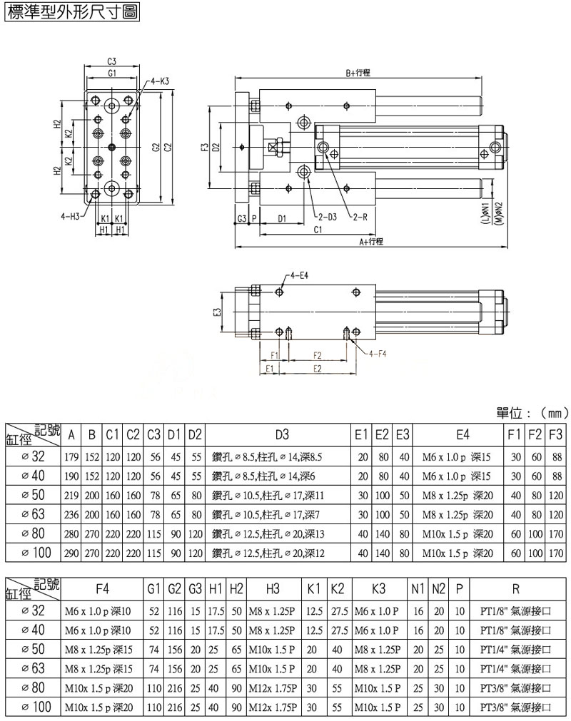 PMGC-32,PMGC-40,PMGC-50,PMGC-63,PMGC-80,PMGC-100,panix導(dǎo)桿氣缸組合