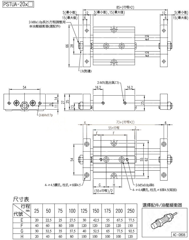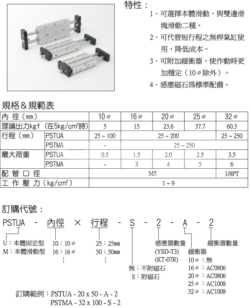 PSTUA-16,PSTUA-25,PSTUA-32,PSTMA-16,PSTMA-20,PSTMA-32,panix滑臺氣缸