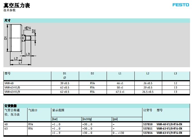 VAM-40-V1/0,VAM-63-V1/0,VAM-63-V1/9,festo真空壓力表