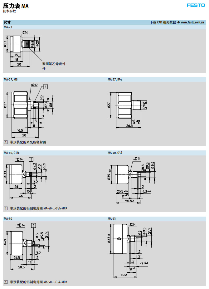 MA-23-6-R1/8,MA-27,MA-40,MA-50,MA-15-10-1/4,festo壓力表