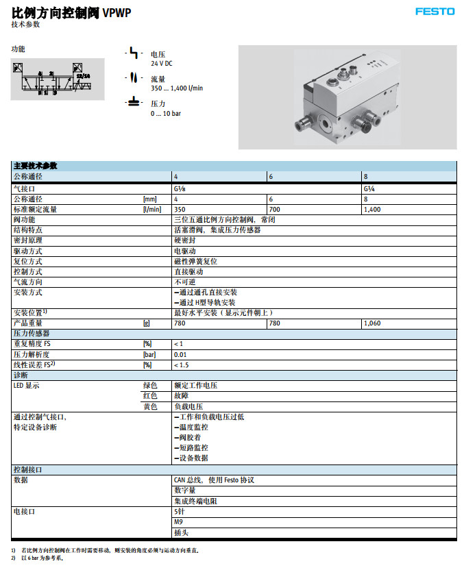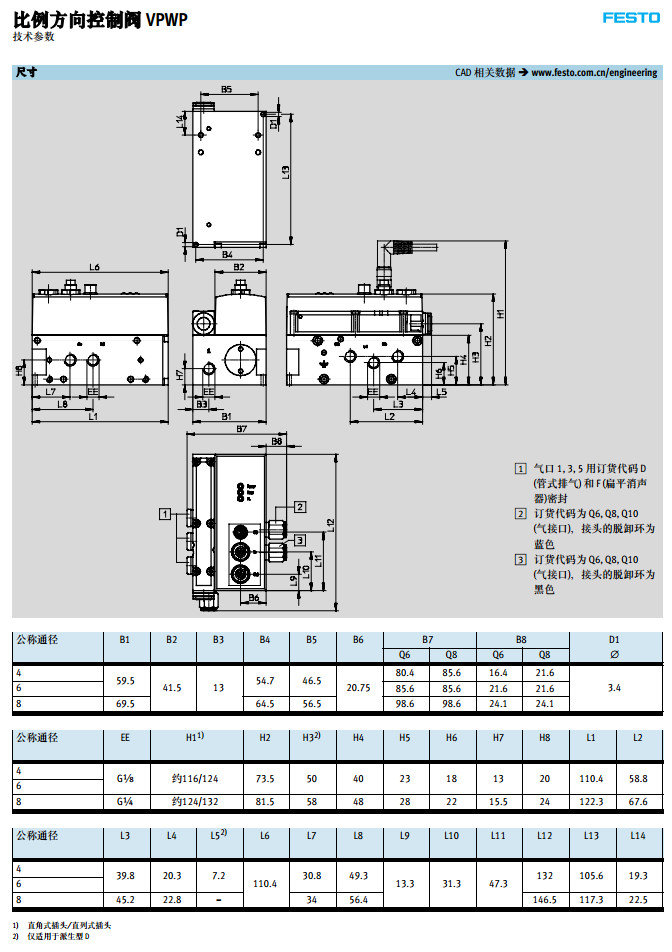 VPWP-4-L-5-Q6,VPWP-4-L-5-Q8,VPWP-4-L-5-Q10,festo比例方向控制閥
