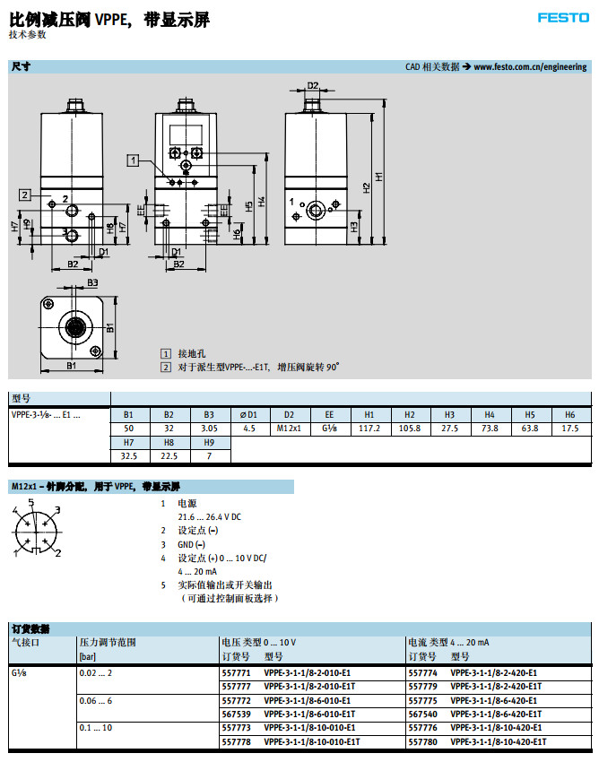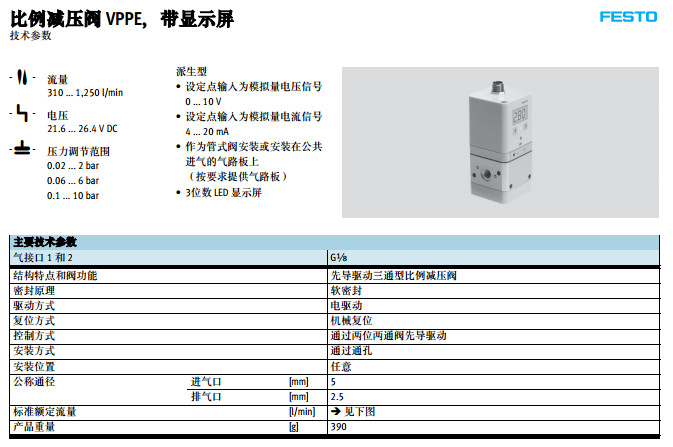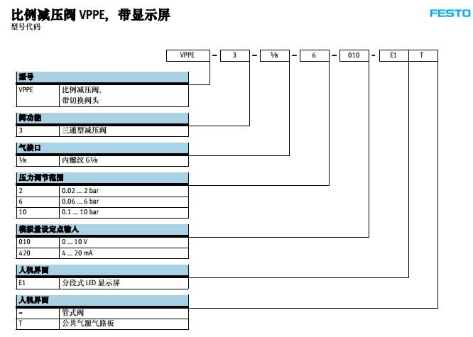 VPPE-3-1/8-6-010,VPPE-3-1/8-2-010,VPPE-3-1/8-10-010,festo比例壓力閥
