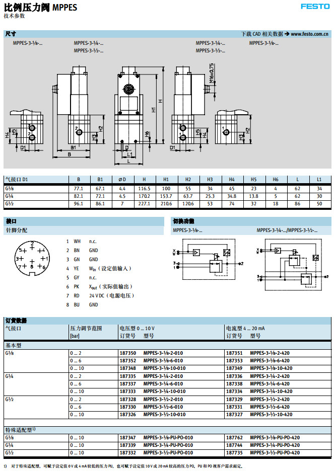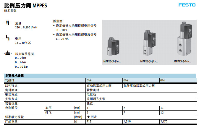 MPPES-3-1/8-2-010,MPPES-3-1/4-2-010,MPPES-3-1/2-2-420,festo比例壓力閥