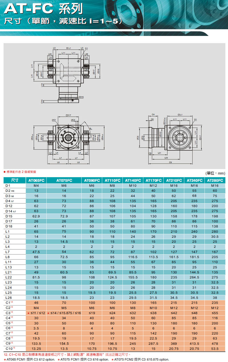 AT065-FC,AT075-FC,AT090-FC,AT110-FC,AT140-FC,AT170-FC,AT210-FC,伺服專用減速機