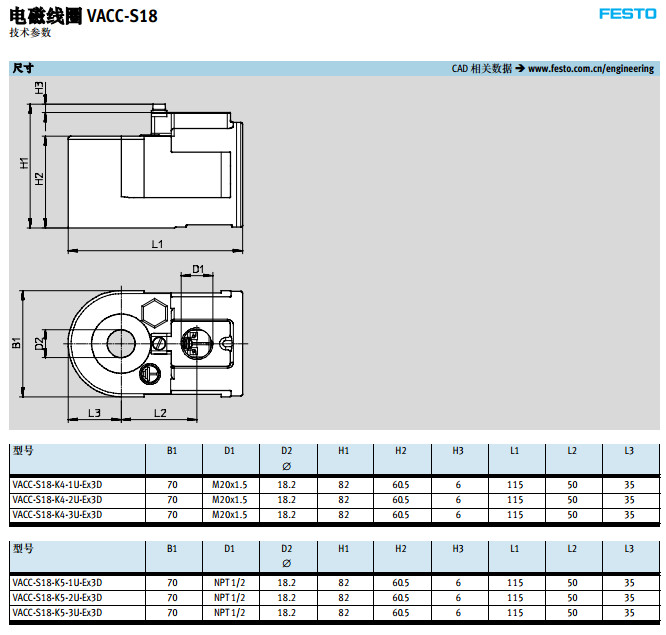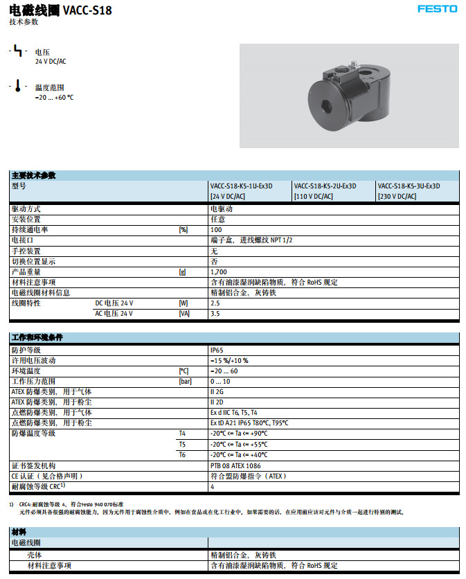 VACC-S18-K5-1U-Ex3D,VACC-S18-K5-2U-Ex3D,VACC-S18-K4-3U-Ex3D,festo電磁線圈