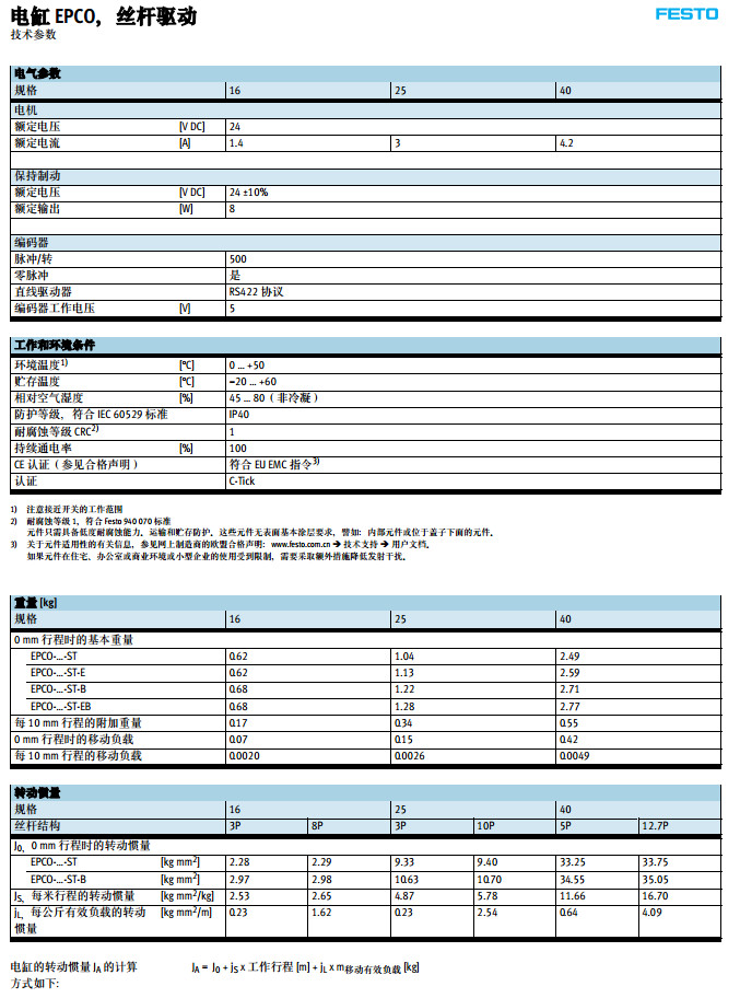 EPCO-16-100,EPCO-25-100,EPCO-40-100,festo電缸