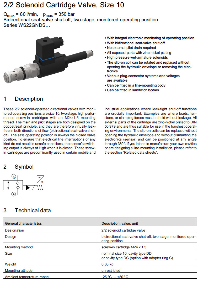 WS22GNDSAB-10-1,WS22GNCSAB-10-1,WS22GNDSAB-10V-1,WS22GNCSAB-10V-1,Bucher方向閥 |