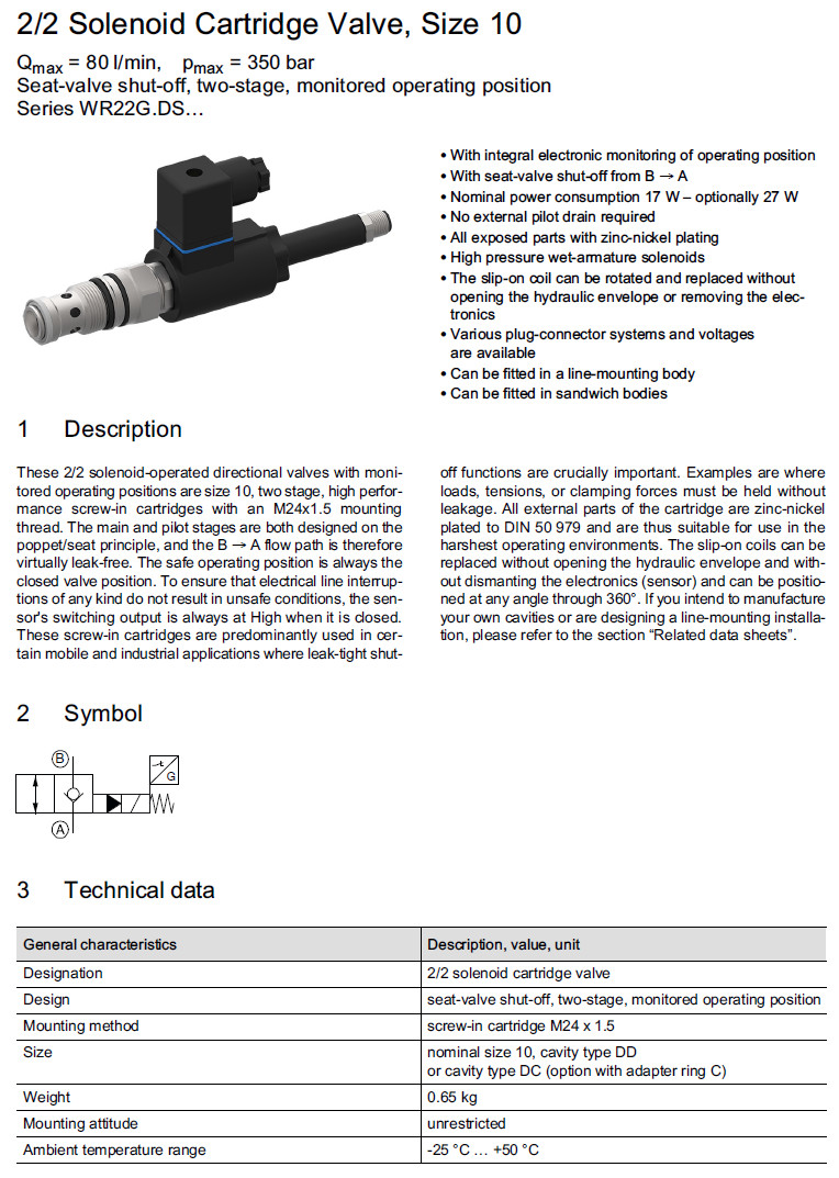 WR22GEDSAA-10-1,WR22GNDSAA-10-1,WR22GECSAA-10-1,WR22GNCSAA-10-1,Bucher方向閥