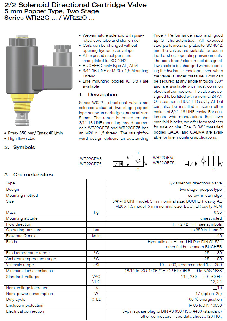 WR22GEA5-1,WR22OEA5-1,WR22GEA5V-1,WR22OEA5V-1,Bucher方向閥