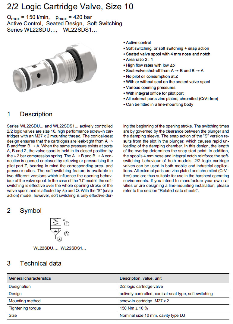 WL22SDU1,WL22SDU2,WL22SDU3,WL22SDU4,WL22SDU5,WL22SDU6,WL22SDU7,WL22SDU8,Bucher邏輯插裝閥