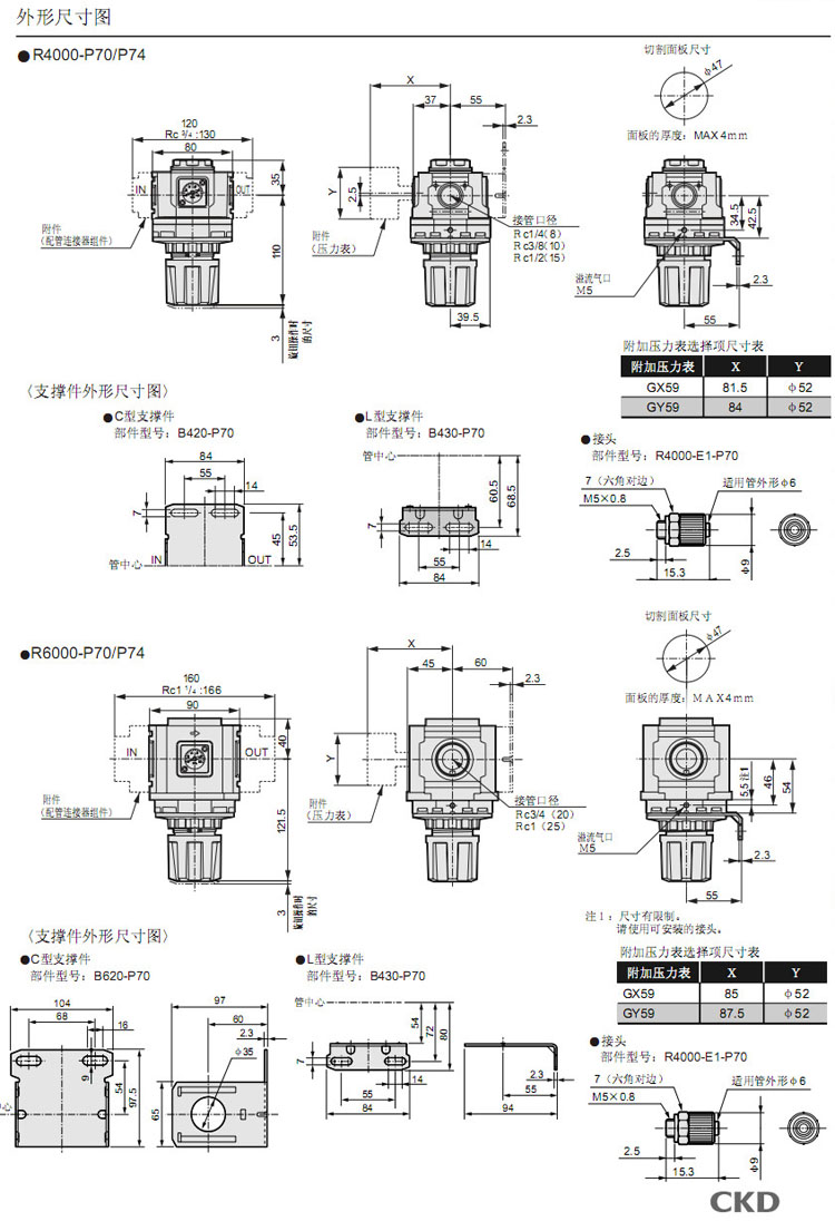 R2000-8,R2000-10,R3000-8,R3000-10,R4000-8,R4000-10,R4000-15,R6000-20,R6000-25,CKD減壓閥