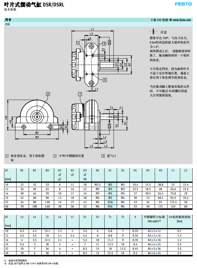 DSRL-10,DSRL-12,DSRL-16,DSR-25,DSR-32,DSR-40,festo葉片式擺動(dòng)氣缸