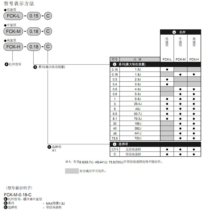 FCK-M-0.18,FCK-M-0.5,FCK-M-0.6,FCK-M-1,FCK-M-3,FCK-M-5,FCK-M-6.5,FCK-M-8.1,CKD緩沖器