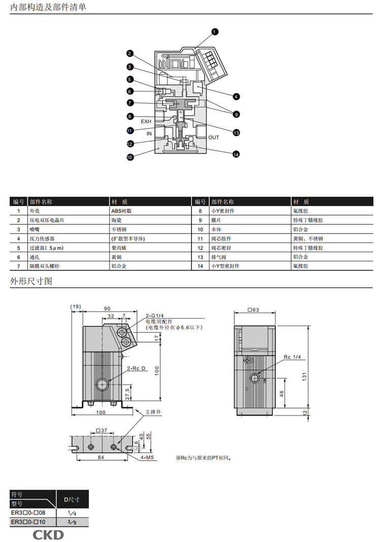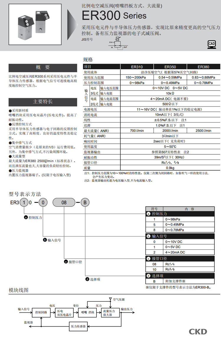ER310-0-08,ER350-0-08,ER380-0-08,ER310-1-08,ER350-1-08,ER380-1-08,CKD比例電控減壓閥