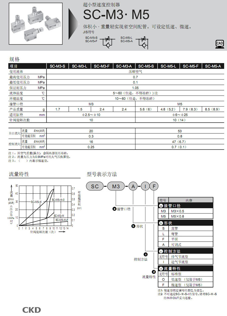 SC-M3-S,SC-M3-L,SC-M3-F,SC-M3-A,SC-M5-S,SC-M5-L,SC-M5-F,SC-M5-A,CKD速度控制器