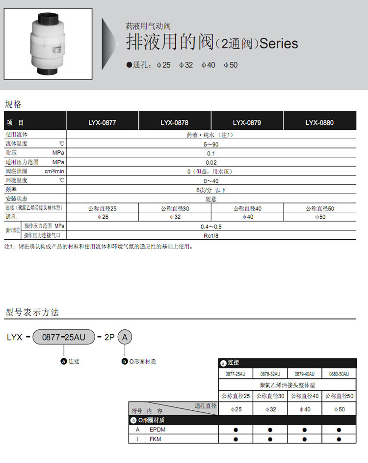 LYX-0877-25AU,LYX-0878-32AU,LYX-0879-40AU,LYX-0880-50AU,CKD藥液用氣動(dòng)閥