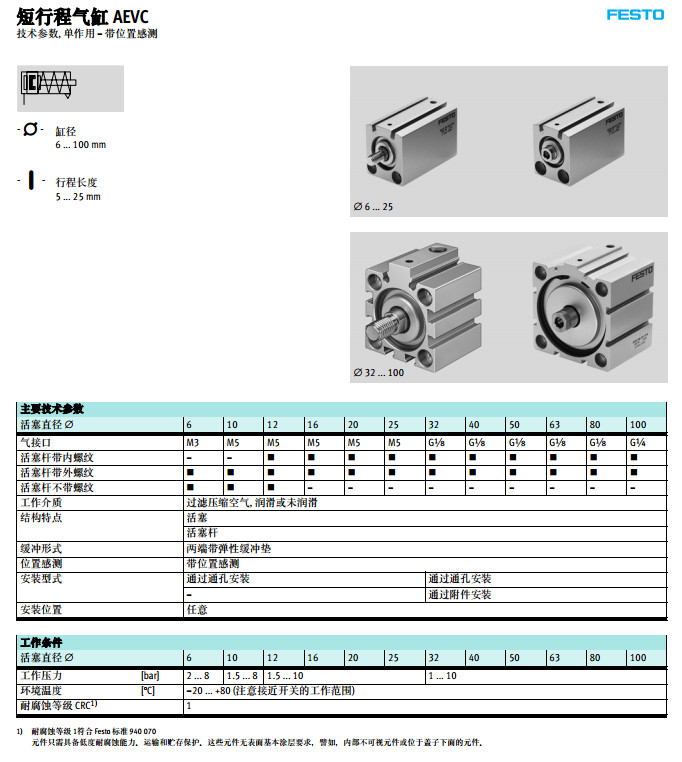 型號: AEVC-4,AEVC-6,AEVC-10,AEVC-25,AEVC-32,AEVC-40,AEVC-50,festo短行程氣缸