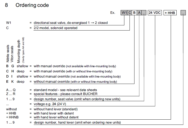 W1CBA1-24VDC,W1CCA1-24VDC,W1CDA1-24VDC,W1CEA1-24VDC,Bucher方向閥