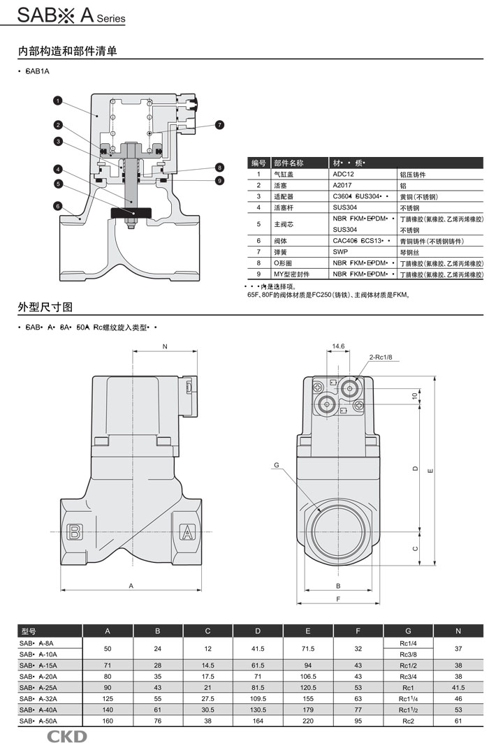 SAB1A-40F,SAB1A-50A,SAB1A-50F,SAB2A-8A,SAB2A-10A,SAB2A-15A,SAB2A-20A,SAB2A-25A,CKD氣控式2通閥