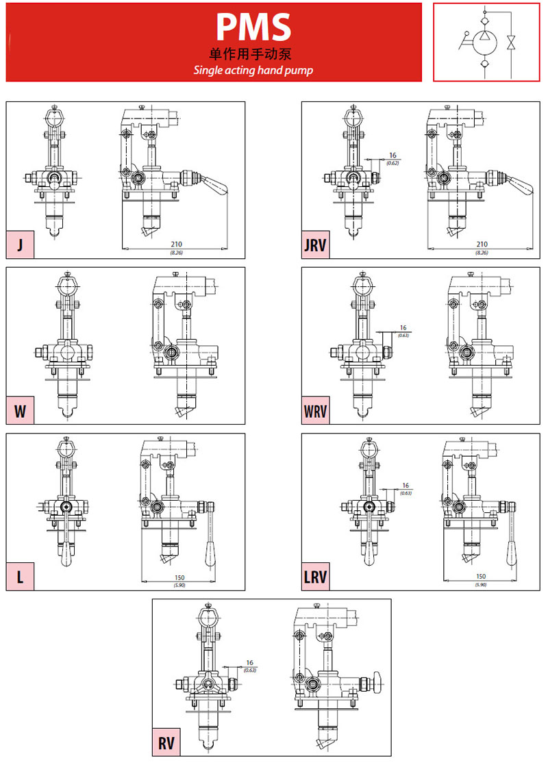 PMS6-P,PMS6-WRV,PMS12-W,PMS25-J,PMS45-L,PMS12-RV,PMS25-JRV,單作用手動(dòng)泵
