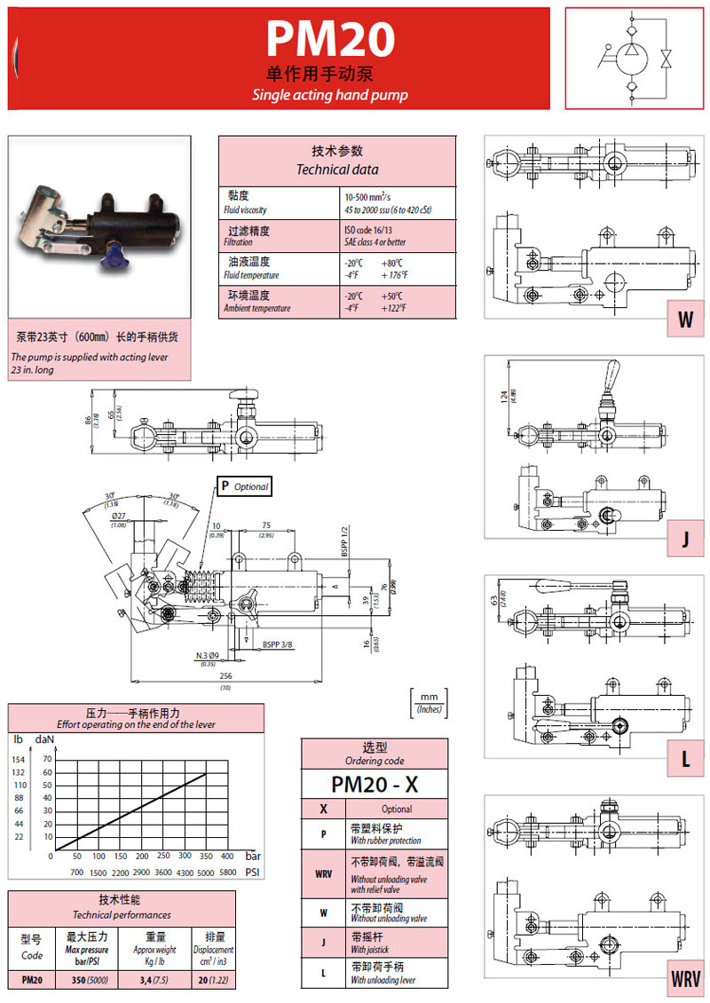 PM20-P,PM20-WRV,PM20-W,PM20-J,PM20-L,單作用手動泵