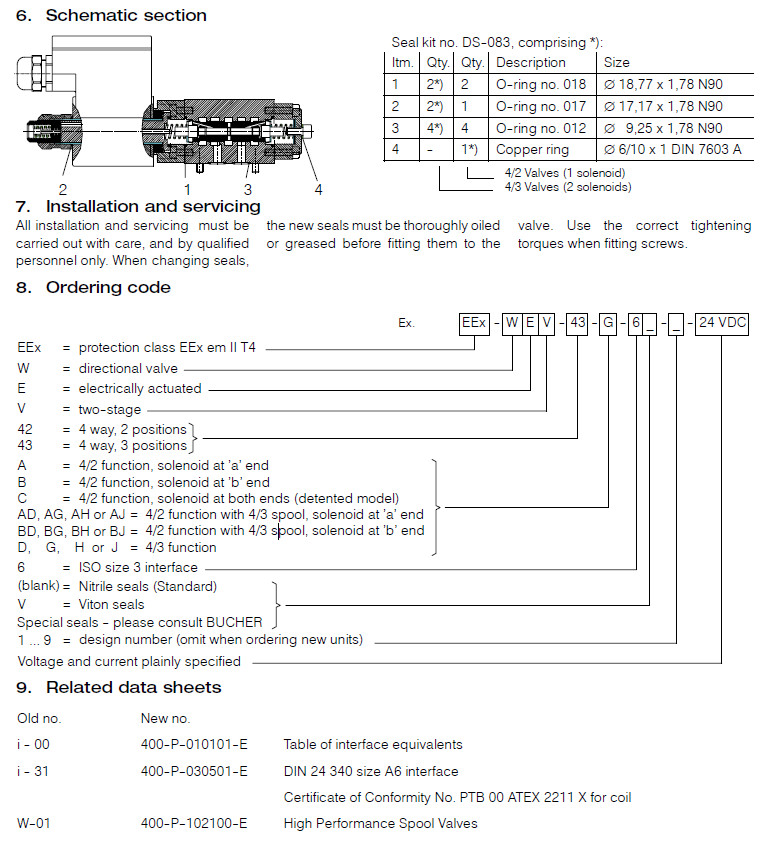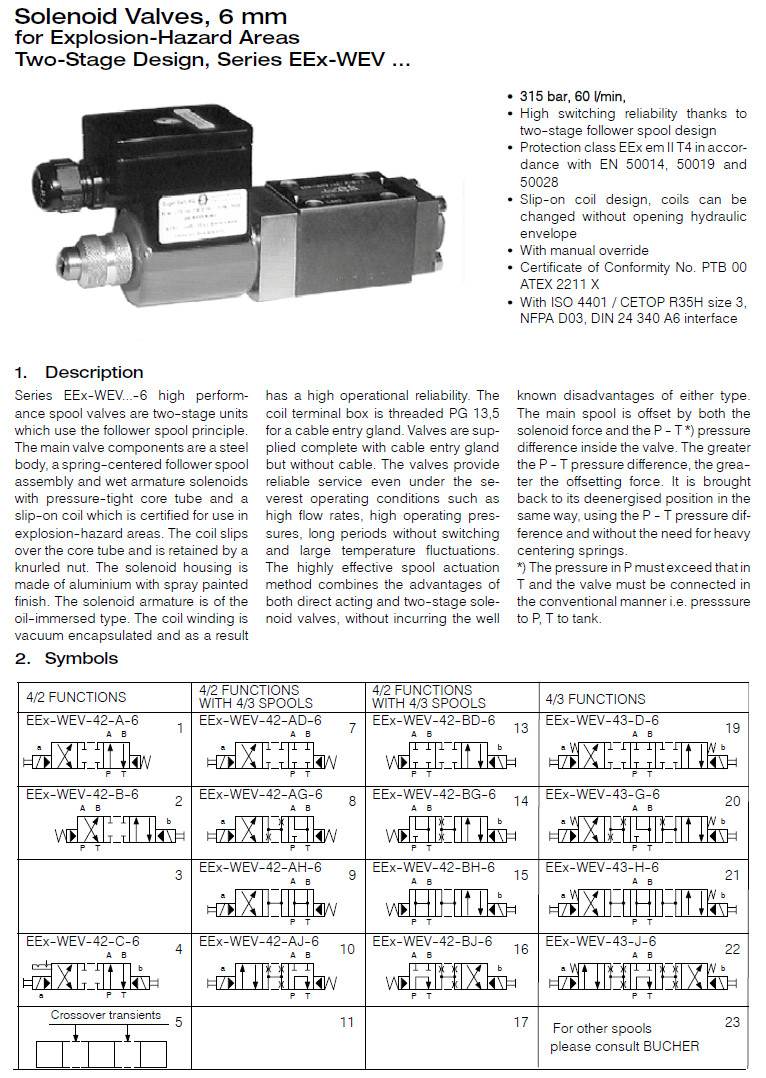 EEx-WEV-42-A,EEx-WEV-42-B,EEx-WEV-43-A,EEx-WEV-43-B,Bucher方向閥