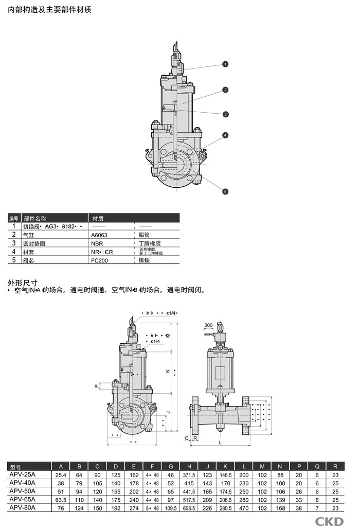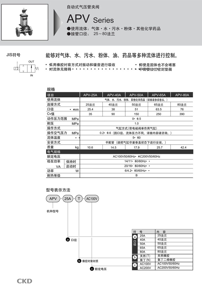 APV-25V-T-AC100,APV-40V-T-AC100,APV-50V-T-AC100,APV-65V-T-AC100,APV-80V-T-AC100,CKD自動(dòng)式氣壓管夾閥