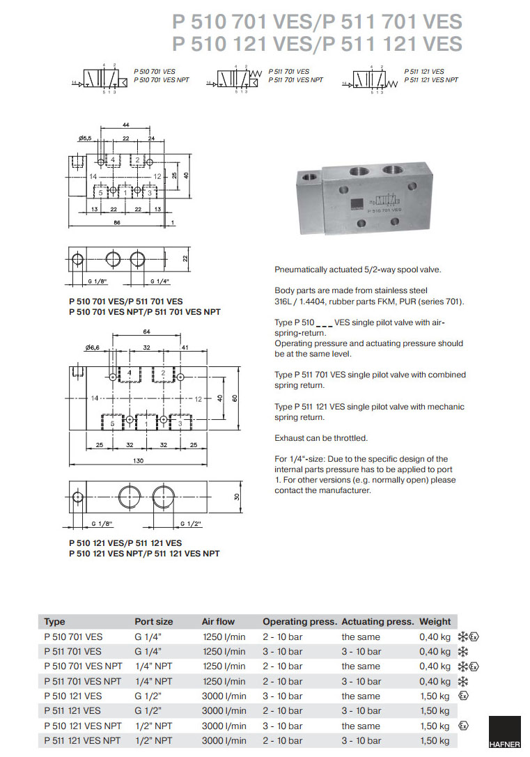 P510701VES,P511701VES,P510701VESNPT,P511701VESNPT,P510121VES,P511121VES,P510121VESNPT,Hafner滑閥