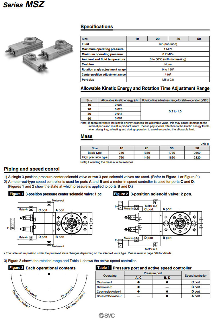 MSZA10A,MSZA20A,MSZA30A,MSZA50A,MSZB10A,MSZB20A,MSZB30A,MSZB50A,SMC3位擺臺氣缸