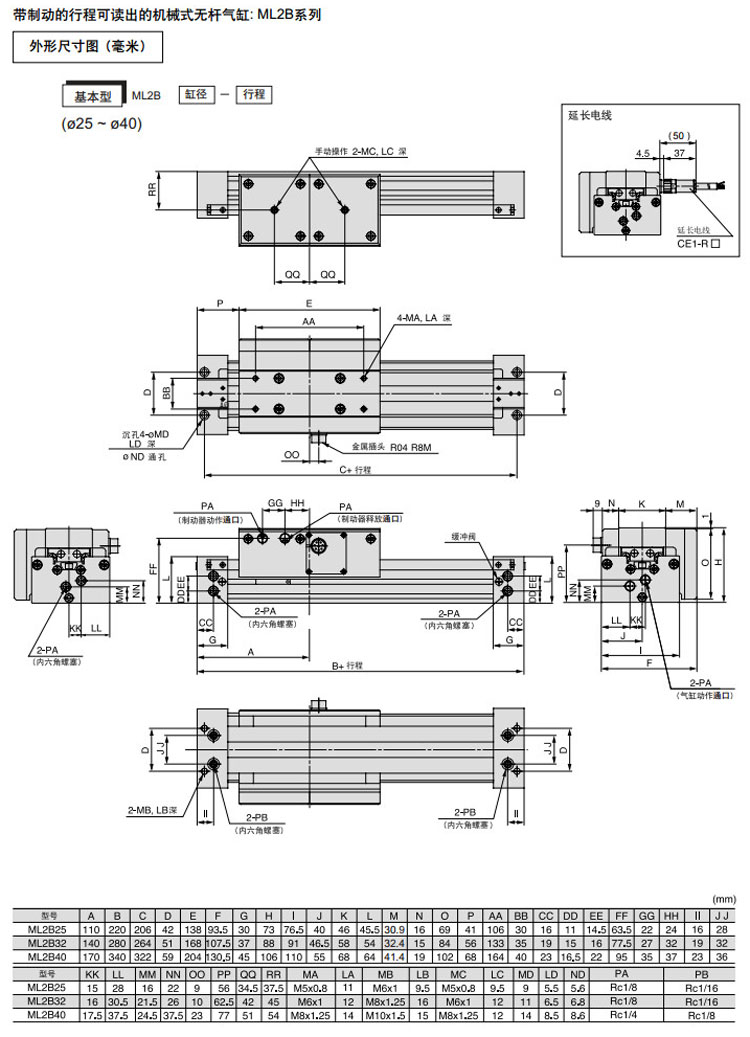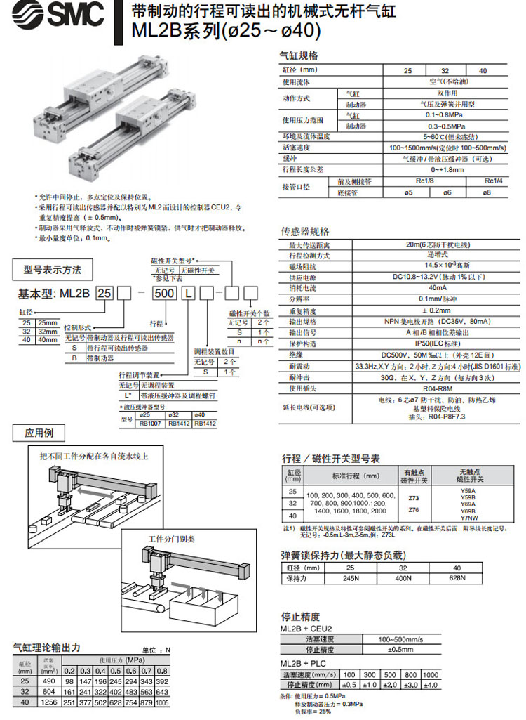 ML2B25-100,ML2B25S-100,ML2B25B-100,ML2B25-200,ML2B25S-200,ML2B25B-200,SMC高精度無(wú)桿氣缸