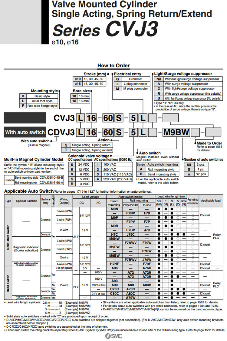 CVJ3B10-15,CVJ3B10-30,CVJ3B10-45,CVJ3B10-60,CVJ3B16-15,CVJ3B16-30,CVJ3B16-45,CVJ3B16-60,SMC帶閥薄型氣缸