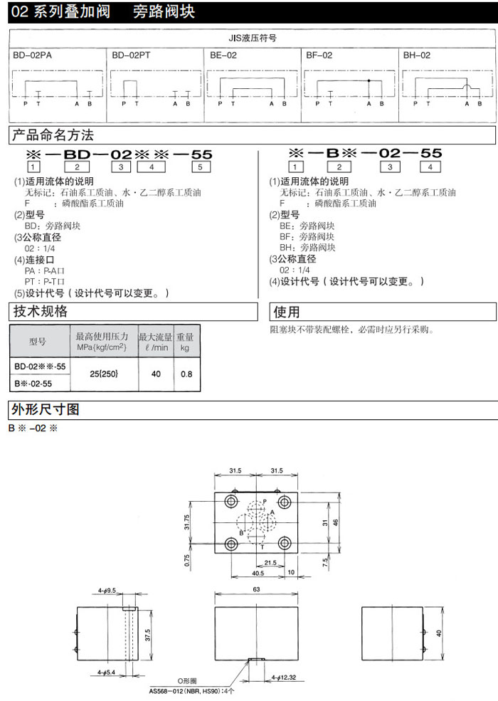 BD-02PA-55,BD-02PT-55,BE-02-55,BF-02-55,BH-02-55,DAIKIN疊加閥旁路閥塊