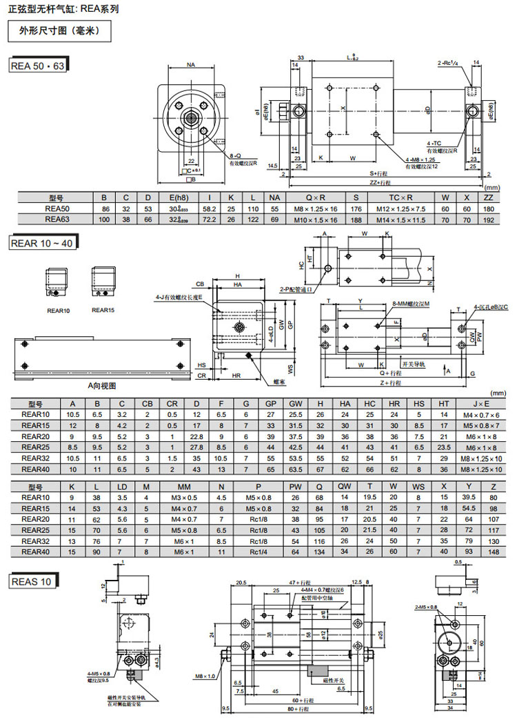 REAS10-150,REAS15-150,REAS20-200,REAS25-200,REAS32-200,REAS40-200,REAS10-200,SMC正弦無桿氣缸