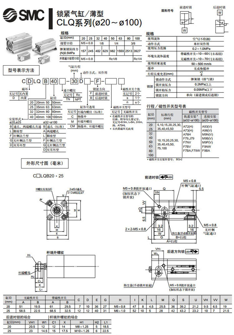 CDLQD32-15D CDLQD32-20D CDLQA50-15D CDLQA50-20D CDLQA50-25D SMC薄型鎖緊氣缸