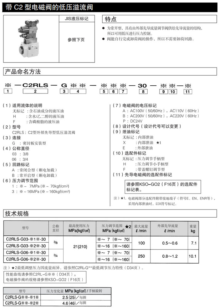 C2RLS-G03,C2RLS-G06,C2RLS-G03-A1A-30,C2RLS-G06-A1A-30,C2RLS-G03-A1B-30,DAIKIN低壓溢流閥