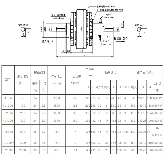 FL/Y型( 軸輸入、軸輸出、止口支撐、水冷卻)磁粉離合器