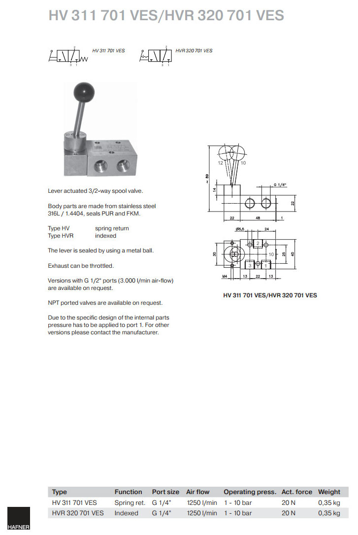 HV311701VES,HVR320701VES,Hafner滑閥