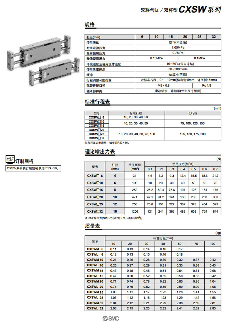 CXSWL6-10,CXSWL10-10,CXSWL15-10,CXSWL20-10,CXSWL25-10,CXSWL32-10,SMC雙聯(lián)氣缸