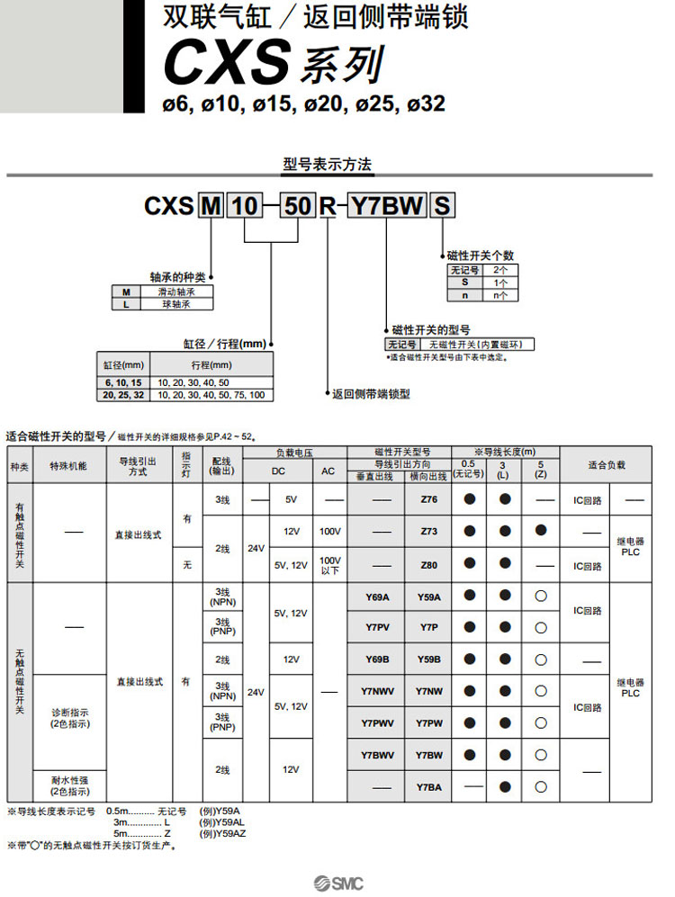 CXSL6-10R,CXSL10-10R,CXSL15-10R,CXSL20-10R,CXSL25-10R,CXSL32-10R,CXSL6-20R,SMC雙聯(lián)氣缸