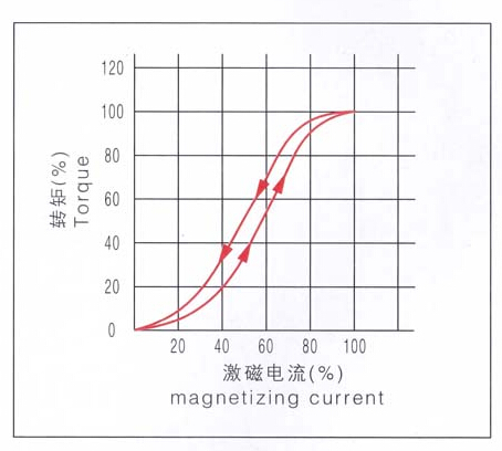 1.勵磁電流與輸出轉(zhuǎn)矩基本成比例關(guān)系,轉(zhuǎn)矩在額定值的5-100%范圍內(nèi)可控制,小電流可以控制輸出較大的轉(zhuǎn)矩。