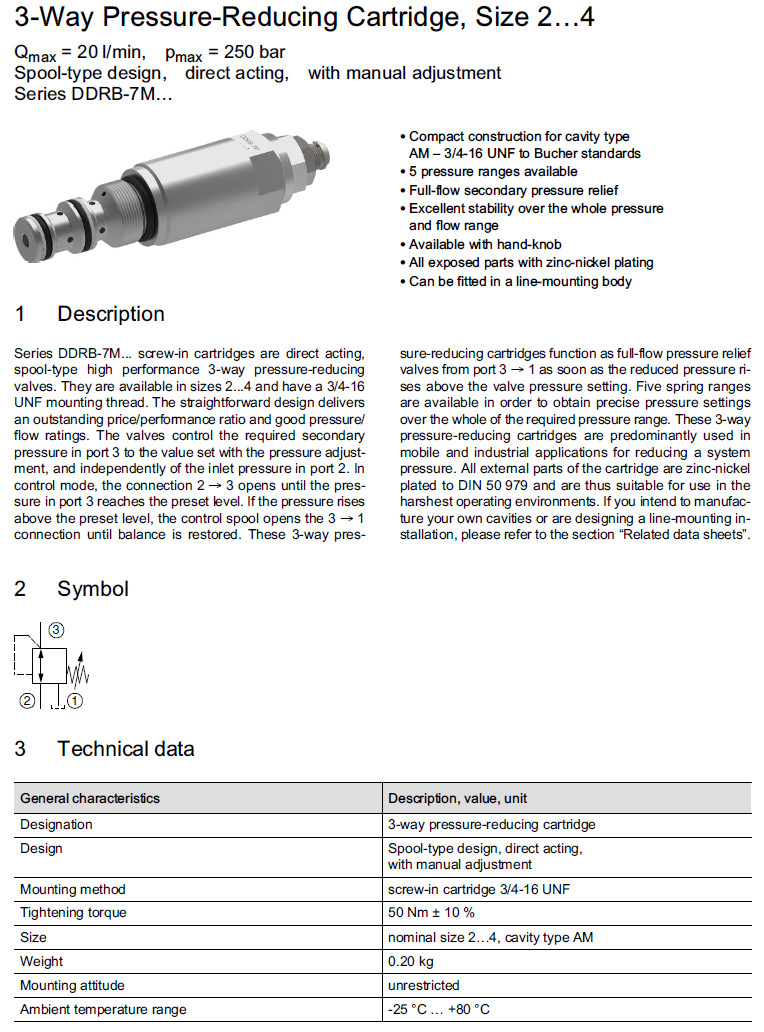 DDRB-7M-2-16,DDRB-7M-2-25,DDRB-7M-4-03,DDRB-7M-4-06,DDRB-7M-4-10,Bucher壓力控制閥 |