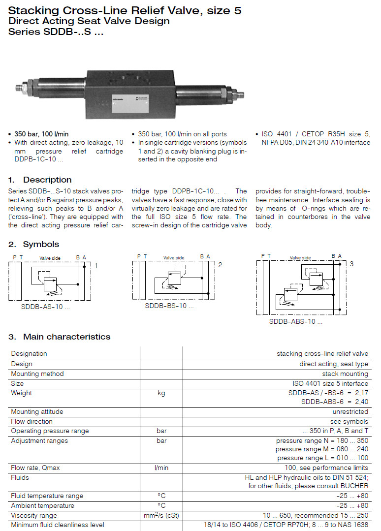 SDDB-AS-10-SN,SDDB-BS-10-SM,SDDB-ABS-10-SL,SDDB-AS-10-SNV,SDDB-AS-10-SMV,Bucher跨線卸壓閥 |