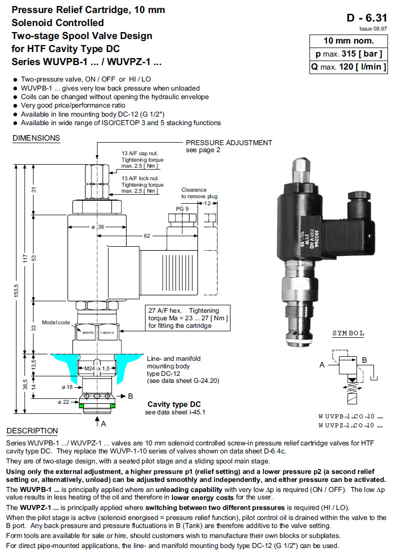 WUVPB-1MCO-10-1,WUVPB-1LCO-10-1,WUVPB-1NCO-10-1,Bucher電磁控制壓力安全閥