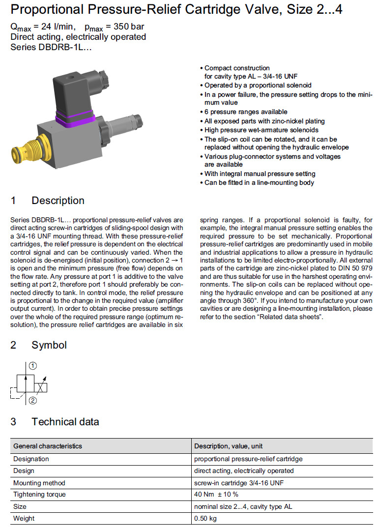 DBDRB-1L-350-2-3,DBDRB-1L-025-4-3,DBDRB-1L-100-3-3,DBDRB-1L-230-2-3,Bucher壓力控制閥