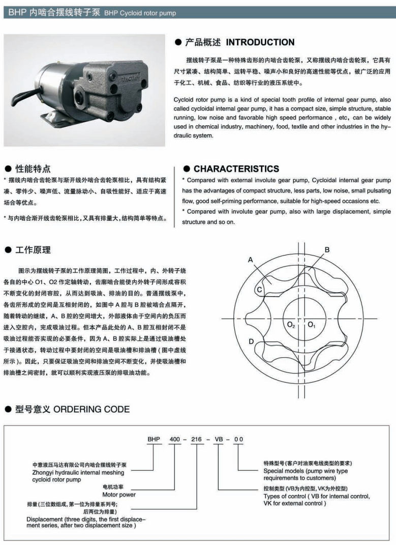 BHP400-206,BHP400-208,BHP400-210,BHP400-212,BHP400-216,BHP400-220,內(nèi)嚙合擺線轉(zhuǎn)子泵
