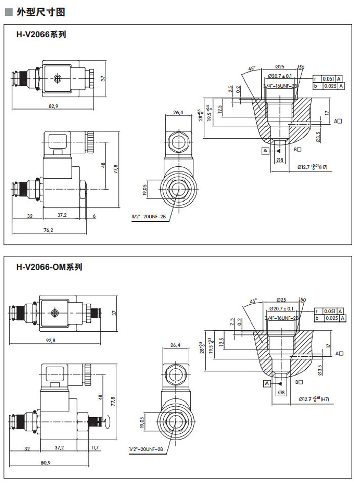 H-V2066-D12,H-V2066-D24,H-V2066-A15,H-V2066-A25,H-V2066-A25-NO-OM,H-V2066-A25-NC,高壓型插裝式無泄漏閥